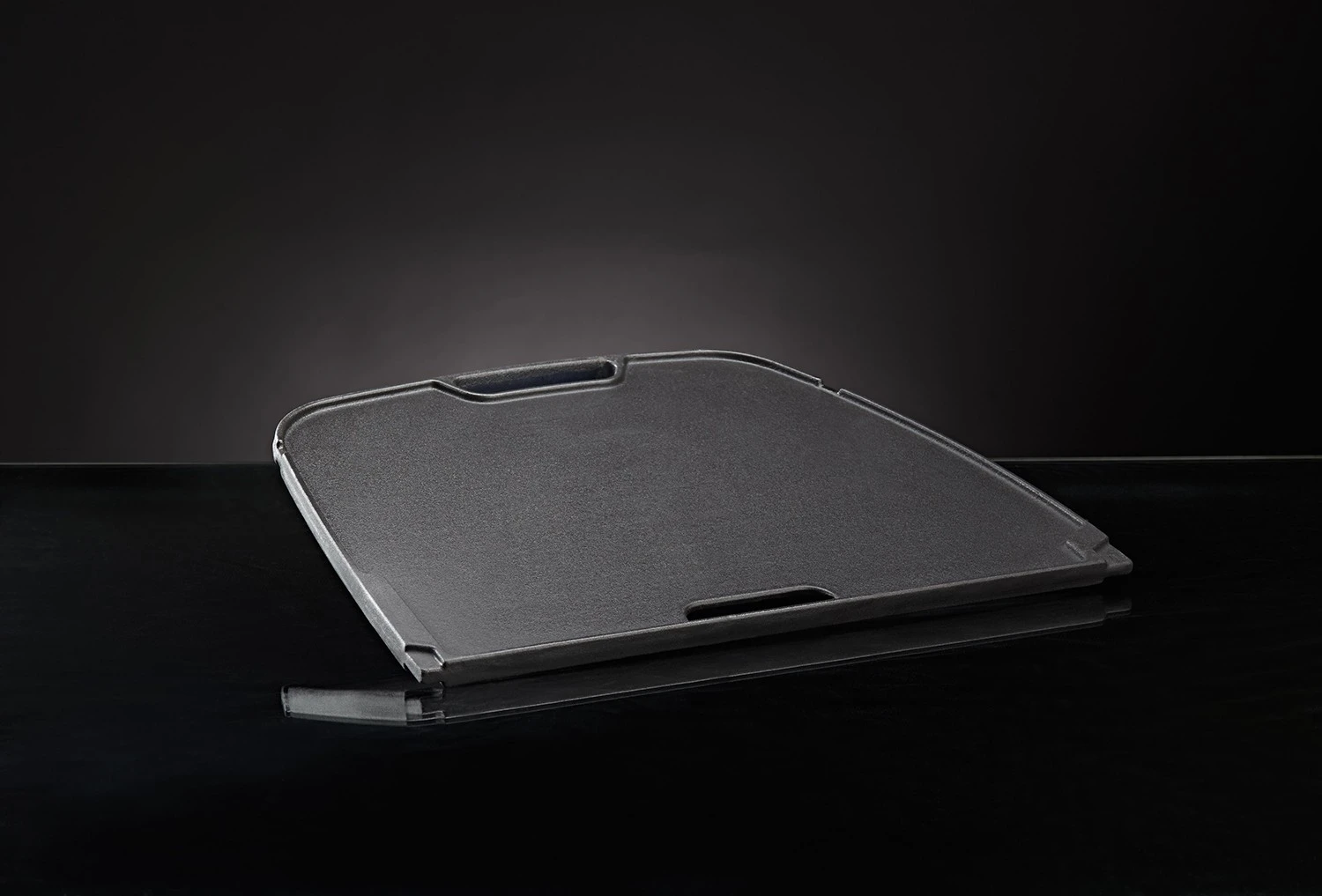 Die Platte aus Gusseisen ersetzt eine Seite des zweigeteilten Grillrostes. Nehmen Sie dafür den rechten Grillrost einfach aus Ihrem Travel Q 285 und legen dafür die geniale Platte ein.