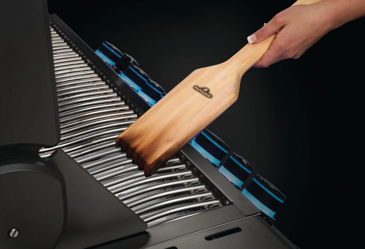 Der praktische Grillschaber ist aus Zedernholz gefertigt und stellt eine natürliche Alternative zu Metallborsten dar.