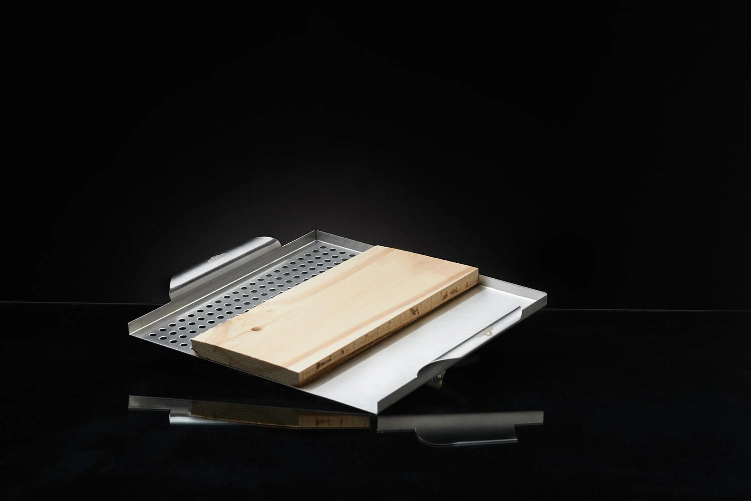 Das Set besteht aus dem Edelstahl-Topper und einer Zedernholz-Planke. Damit erhalten Sie ein sehr vielseitiges Grillutensil.
